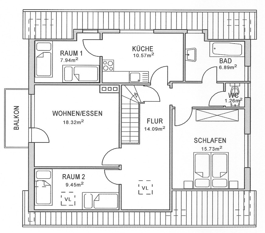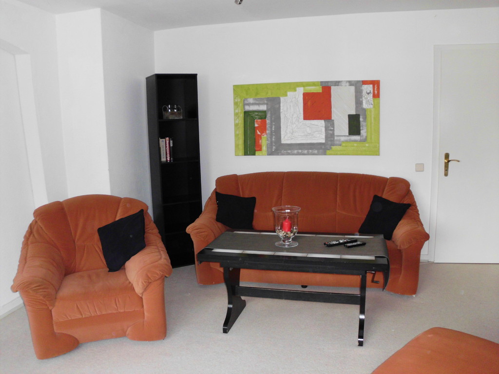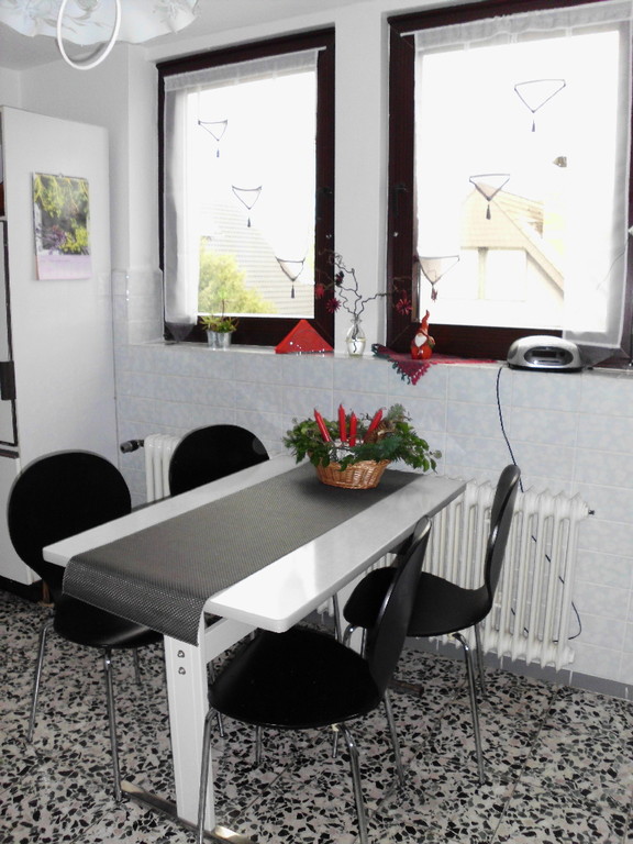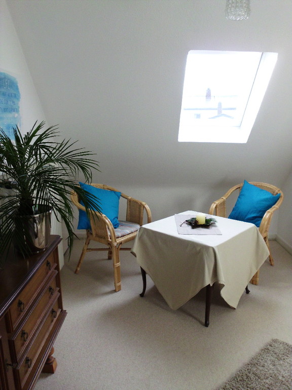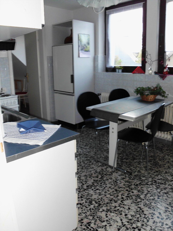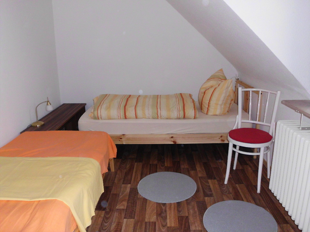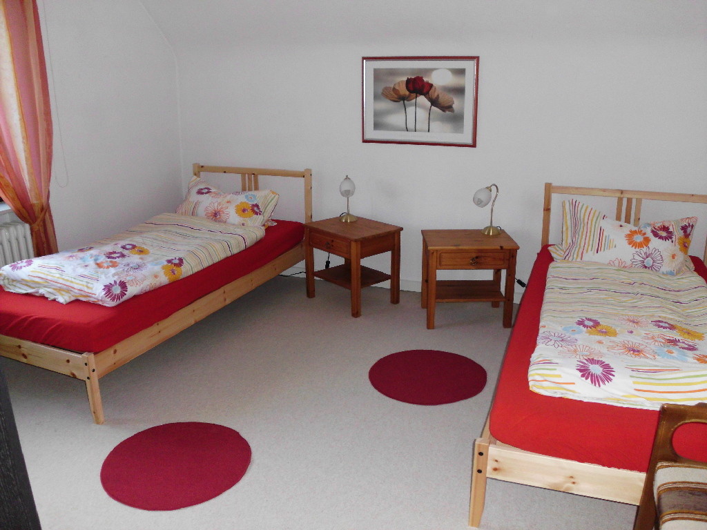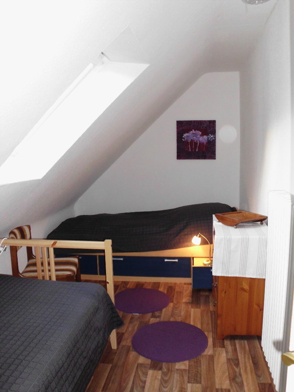 Die Einliegerwohnung im ersten Stock bietet ein Schlafzimmer mit zwei Einzelbetten, die zusammengeschoben werden können, zwei kleinere Schlafzimmer mit je 2 Betten, ein großes Wohnzimmer mit Fernseher, ein Badezimmer und ein separates WC. Außerdem einen WLAN-Internet-Anschluss und einen Balkon in Süd-/Westlage, so dass Sie abends Sonne haben. Stellplatz für PKW ist auch vorhanden.
